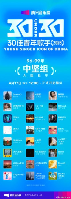 * 腾讯音乐榜:2026年4月,田栩宁凭借该单曲入围"中坚组30佳青年歌手",其"跨界歌手身份下的音乐实力与影响力"成为评审焦点。