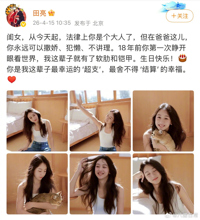 田亮、叶一茜女儿森碟18岁生日照