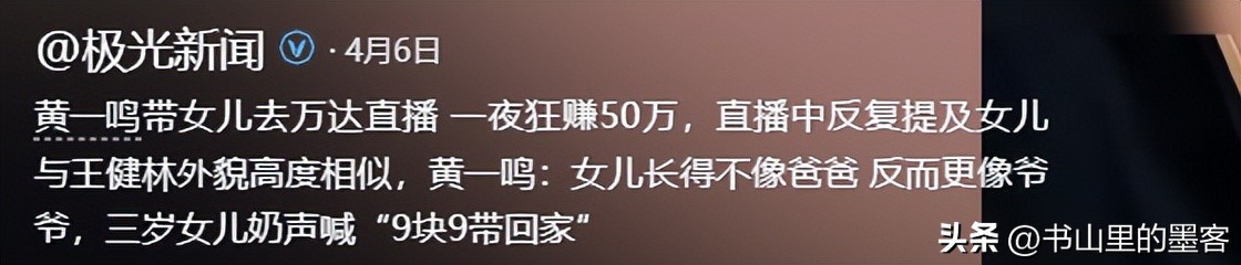 回看这几年,黄一鸣和王思聪分开后生下女儿,之后一直想让男方承担起父亲的责任,从公开指认生父,到一次次在网上喊话,再到带着女儿去万达直播造势,所有办法都试过了,王思聪始终没回应。