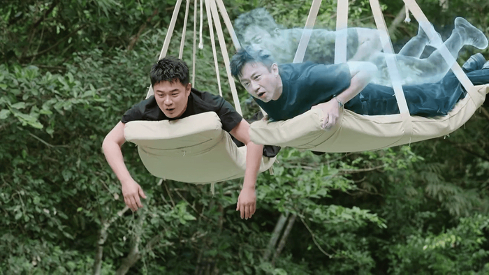 范志毅、马頔、李乃文、王勉被吊在半空中晃悠,像一串被挂起来的大粽子,又可怜又滑稽,看得人又心疼又想笑。