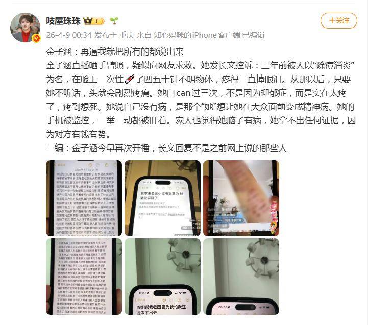 据网友爆料4月8日深夜,前艺人金子涵的一场直播,在网络上投下了一颗震撼弹。她没有露脸,而是通过展示手机备忘录的方式,发出了一连串令人心惊的控诉,内容涉及不明注射、身心控制与全天候监控,瞬间引爆了全网对其人身安全的巨大担忧。