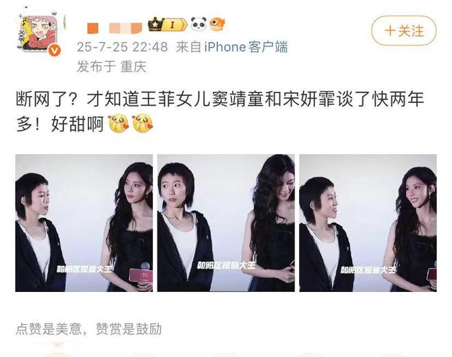 有人爆料窦靖童和宋妍霏闺蜜情在一起已经快两年了,也就是演戏后擦出火花,最终成为好闺蜜。