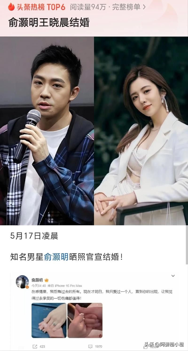 这条动态瞬间引爆热搜,“俞灏明王晓晨结婚”冲上第一,全网都以为好事将近。