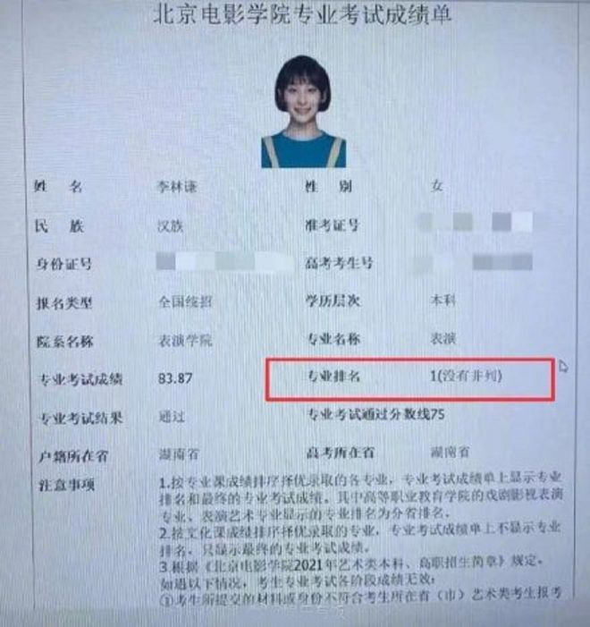 2021年中戏表演专业第一名是一名女生,来自辽宁抚顺,名叫曾新杨,是一名素人。这次北电艺考的王者也是一名女生,来自湖南省的李林谦。林谦妹妹虽然是芒果娱乐签约艺人,但是她并不出名,不过还是要恭喜她,未来可期!期待她的影视作品!