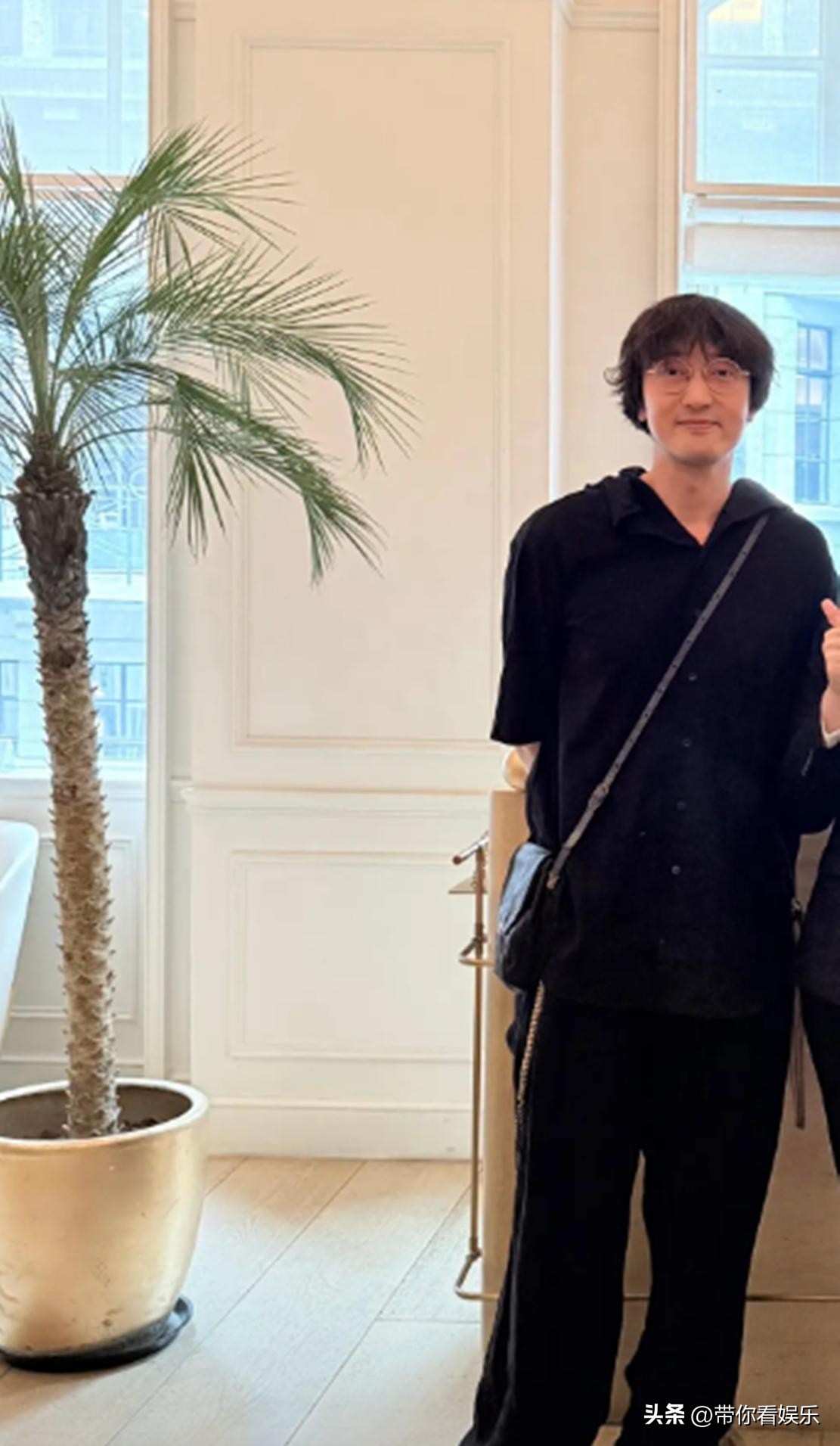 照片里王传君真不像过去那个常被说“像刚演完《荒野生存》片场逃出来的”男人。胡子剃得干干净净,头发剪短了,还吹得服帖,金丝眼镜一戴,整个人从“胡同口修自行车的王师傅”秒变“高校哲学系青年讲师”。黑色短袖衬衫配阔腿裤,灰白拼色运动鞋,斜挎的小包是帆布的,边角还磨了点毛边——不像是赶通告,倒像约好了去798看展顺路吃了碗炸酱面。
