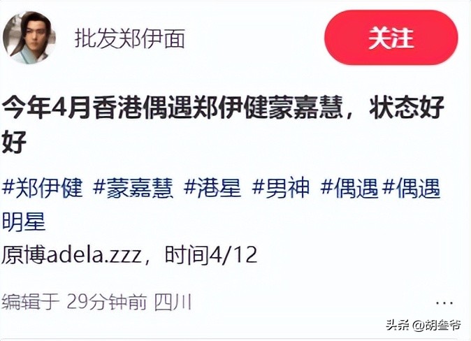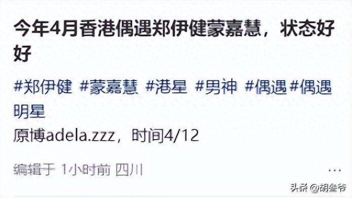4月13日,多位网友在短视频平台晒出偶遇郑伊健与蒙嘉慧的现场画面。