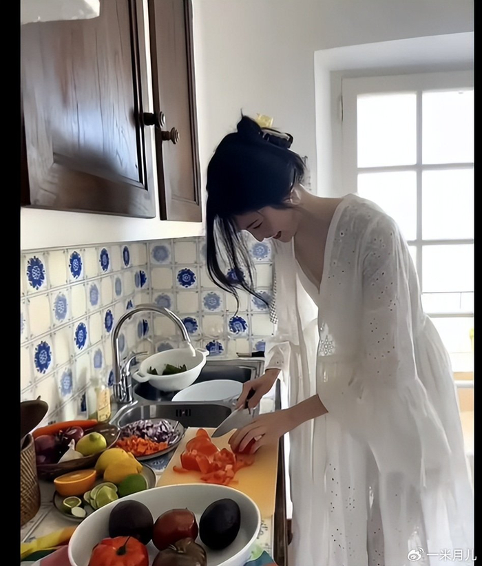 何穗化身快乐厨娘仙气十足!度假和朋友享用美食心情好,我们可以发现,她现身于自己家的厨房,身着白色的长裙,时而品尝着美食,时而亲自下厨,做自己的美食,这也是比较接地气的一面,令人羡慕了。