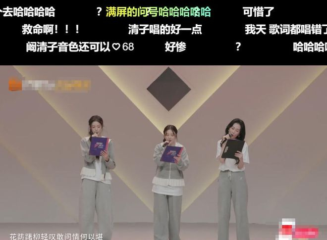 阚清子这次真的有点惨,自己本身就不是专业唱跳出身,还碰上了两个大白嗓队友,上台的时候全员都拿着歌词,观感上就差点意思。温峥嵘全程不在调上,张艺上一副没睡醒的样子,唱出来跟朗诵没差,网友都辣评“比想象中还要糟糕”。没想到全组居然是阚清子唱得最好,好歹不跑调还有不错的音色,就是肺活量差点意思,不少网友都心疼姐姐命不好,摊上这么两个队友。