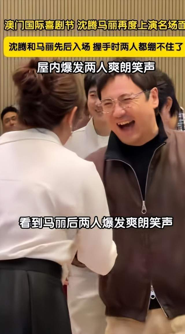 4月9日,澳门国际喜剧节嘉宾入场环节,喜剧节发起人沈腾与马丽再度贡献“名场面”。两人先后入场,沈腾进场看到马丽后上前握手,相视瞬间双双绷不住,爆发出爽朗笑声——沈腾笑声洪亮“全场都能听见”,马丽也笑得前仰后合,网友精准调侃:“装不了一点。”现场视频迅速登上热搜,被观众称为“长在笑点上的互动”。