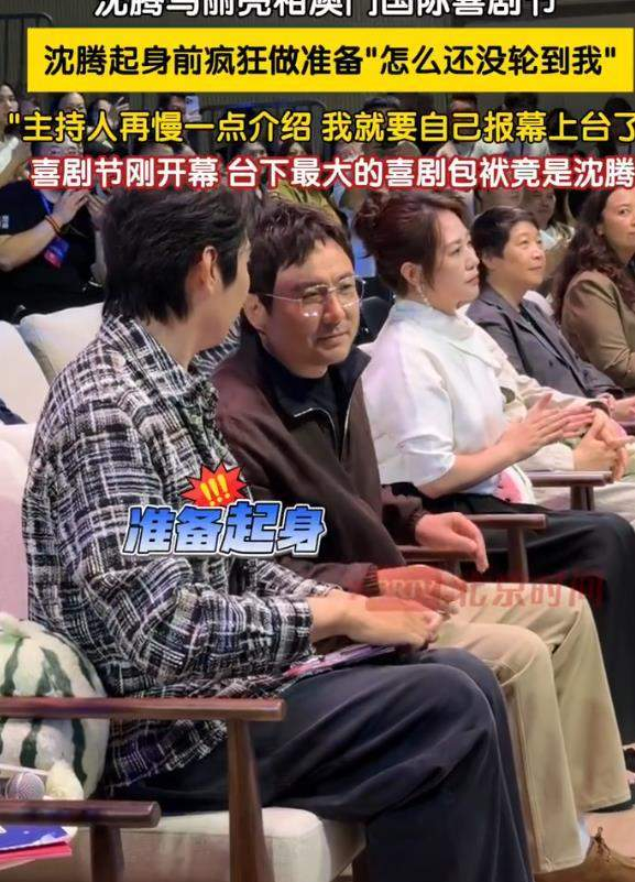 镜头记录下的细节更显喜剧人本色:沈腾在起身前疯狂做心理准备,表情写满“怎么还没轮到我”;主持人若再慢一点介绍嘉宾,他仿佛就要自己报幕上台。当听了一圈没有自己名字时,他只能默默鼓掌,最后还下意识看了看马丽,仿佛在确认“都没看见这一幕吧”。喜剧节刚开幕,没想到台下最大的喜剧包袱竟是沈腾本人。