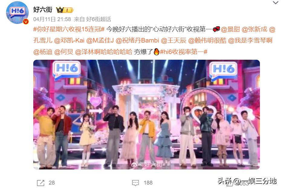 在《浪姐7》发光发热的时候,同天播出的《你好星期六》收视效果也很不错。