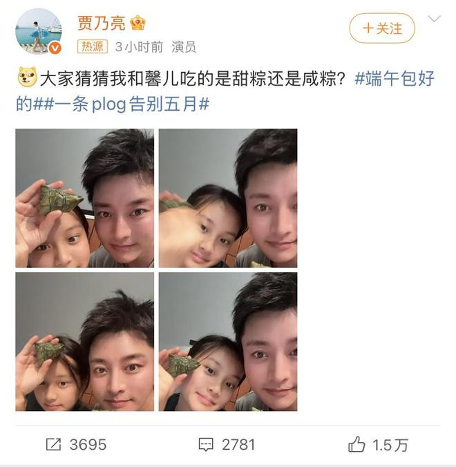 5月31日晚间,贾乃亮在社交平台中发文表示与女儿甜馨一起过端午节,两人合照留念并拿出粽子,现在的甜馨长相是越来越像贾乃亮了,五官、脸型如同完美复刻,不得不说,贾乃亮的基因是真强大。