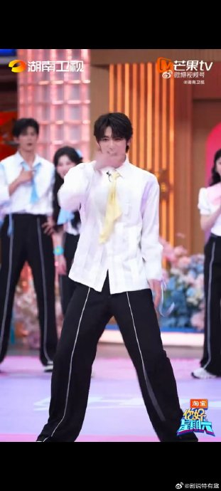 赖伟明在新中式造型的加持下,以折扇开场尽显儒雅贵公子气质,唇红齿白的古风形象与传统综艺的活泼氛围形成惊艳反差。其优越的骨相和宽肩长腿的身材比例在动态镜头中极具视觉冲击力,尤其是一双灵动的小狗眼,在游戏环节中因专注或羞涩而眼神闪烁、耳尖泛红的细节,被观众称为"心动暴击"。更难得的是,他展现了扎实的唱跳功底——抖肩舞律动精准,双人合作舞台动作干净利落,预备爱豆级的实力打破了"花瓶"预设,印证了"颜值与实力并存"的稀缺性。