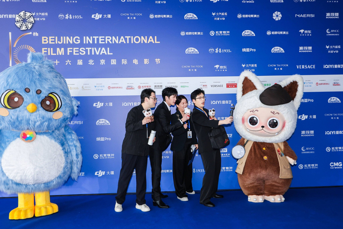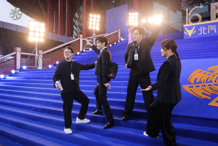 4月16日,《年会不能停2》剧组亮相第十六届北京国际电影节开幕式红毯环节,因现场降雨,白客为张若昀撑伞。