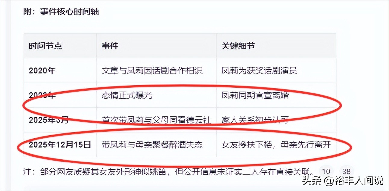 据了解,文章的另一半疑似话剧演员凤莉,两人因话剧结缘,算下来有好几年了。