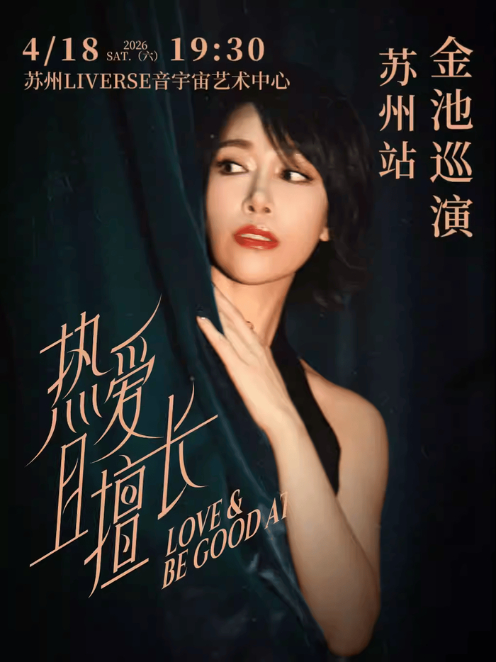 2026年4月18日晚七点半,在金池苏州演唱会,金姐将用那金声共振的嗓音为你打开一扇通往内心的门。