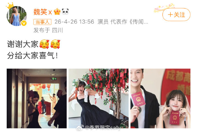 剧集杀青后,两人的互动并未止步于工作。2026年4月魏笑步入婚姻殿堂,曾黎的祝福成为友情的公开见证。她不仅转发魏笑的领证照片,更精心选择多张二人亲密合照,配文“愿你拥有长长久久的幸福”,字句间尽显真挚关怀。值得注意的是,魏笑领证时有另一位好友赵露思相伴,而曾黎作为“姐姐辈”友人选择以线上方式表达心意,这种差异化的支持方式恰恰映射出她们在彼此生活中扮演的不同角色——既是事业伙伴,亦是可倾诉的知己。