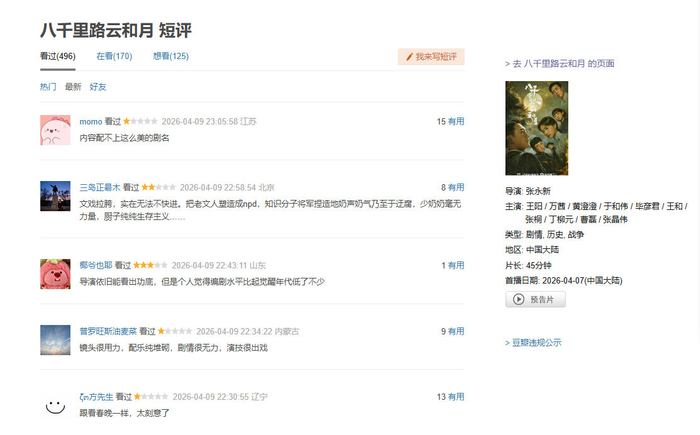 观众口碑方面,该剧也并不乐观。在很多信息流平台当中,该剧已经被剧迷们“打成筛子”了。剧迷们从方方面面论证这部戏的叙事漏洞问题,演员们的表演问题等等。当然,信息流平台喜欢“投其所好”,我看到的关于该剧漫天的差评,只是“我看到的”。豆瓣短评区域,则可以作为另一种参考。