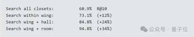 凭借这种记忆结构,MemPalace的检索效率相比全局乱搜提高了约34%。