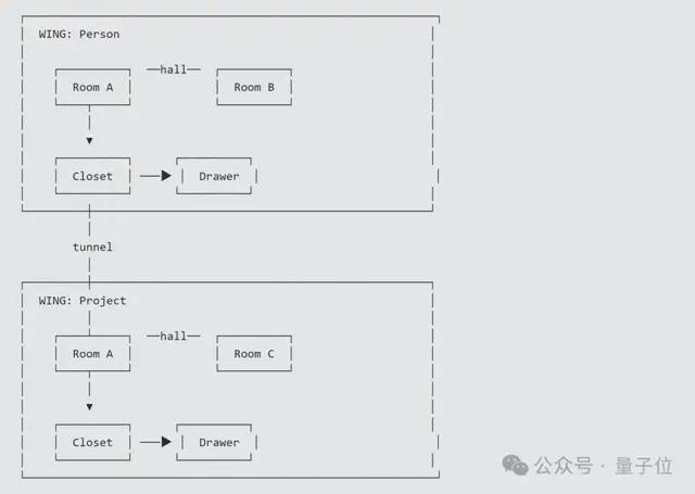 而当不同翅膀出现了相同的房间时,MemPalace就会自动打通Tunnels(隧道),以把分散在不同人、不同项目中的同一主题连接起来。