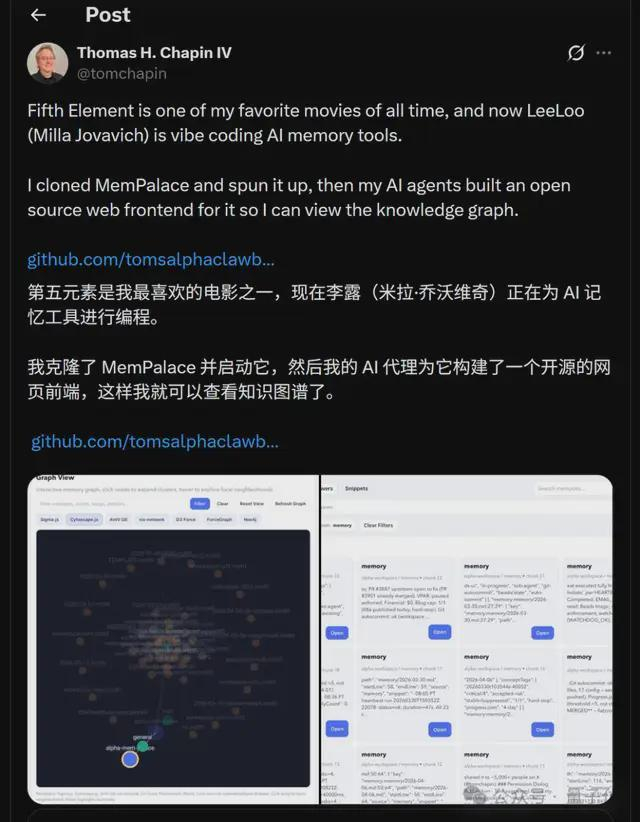 Milla Jovovich,这位曾饰演爱丽丝的知名女星,最近和程序员老友及Claude一起,合造了一个AI记忆系统。