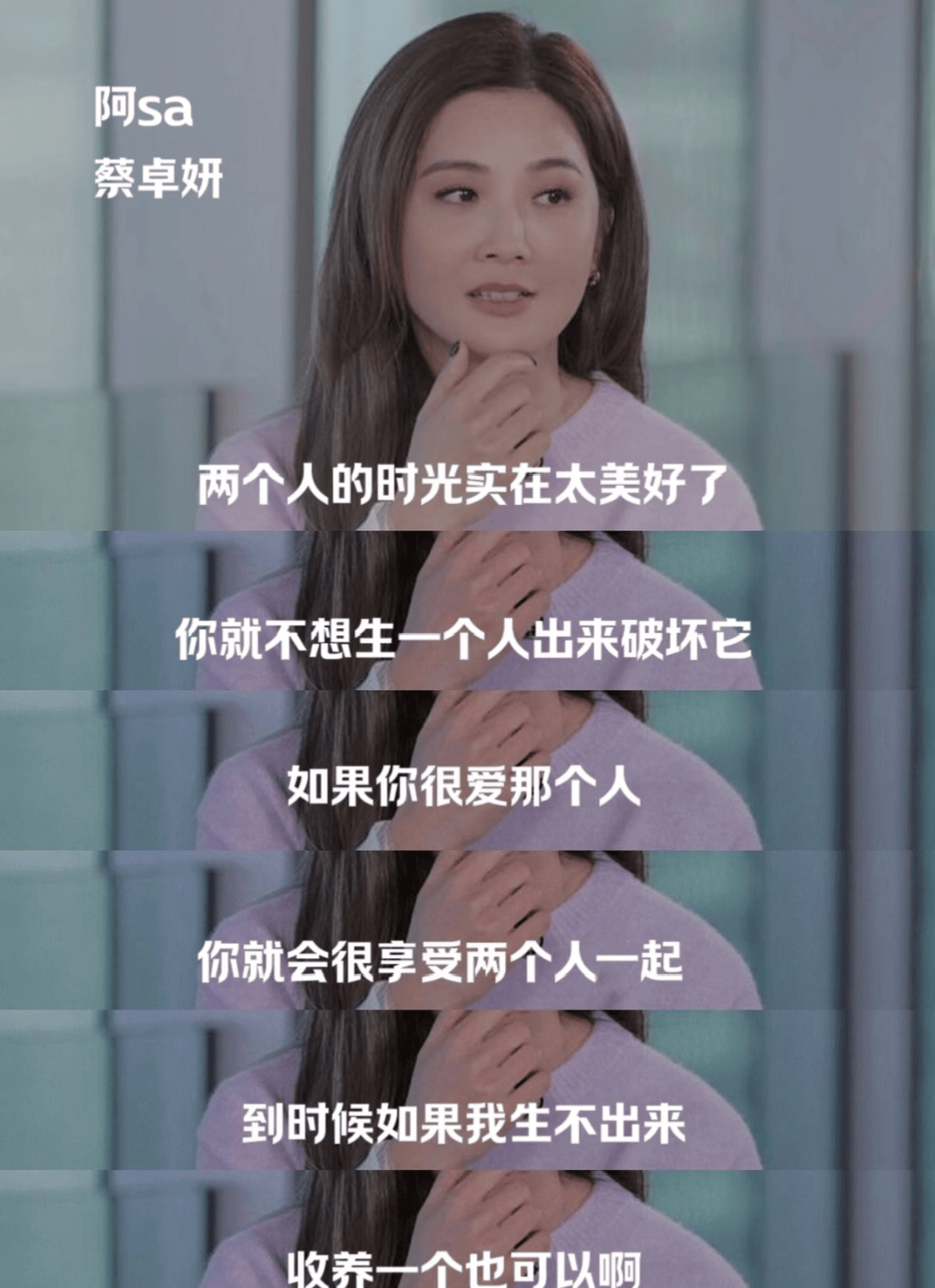 当然,阿Sa对于自己要不要生孩子也没有特别功利,她曾表示两个人如果很相爱却无法生孩子的话,可以领养。