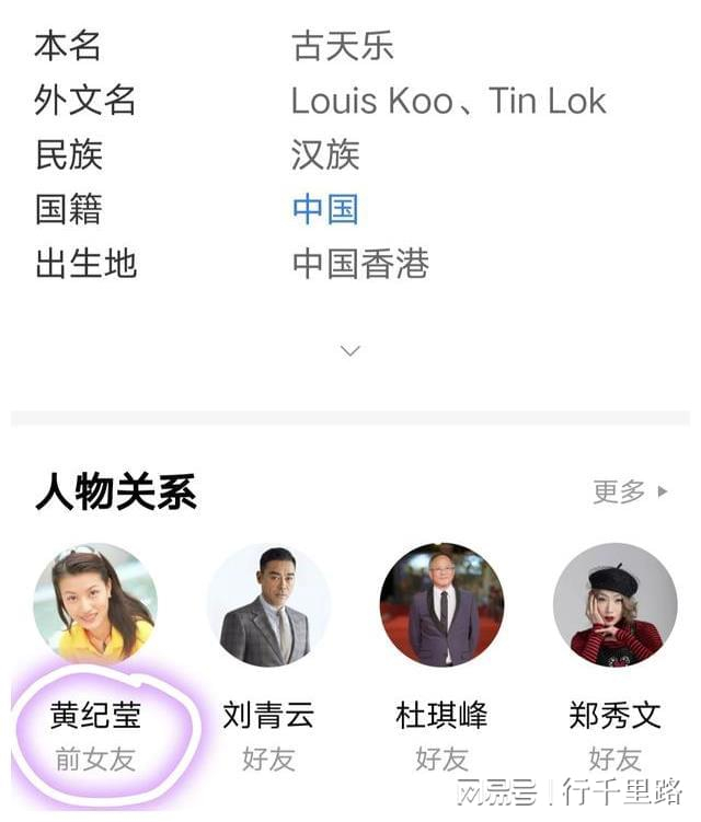 古天乐拍过很多戏,和众多女明星传过绯闻,他只承认黄纪莹一个女友。两人因拍摄《餐餐有宋家》结缘,相恋七年后分手。