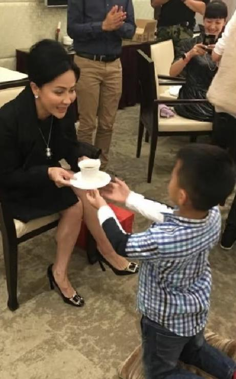 认亲仪式上,康康跪地奉茶,刘嘉玲感动到落泪。大概在刘嘉玲心里,这些年没有一个自己的孩子,也是有些遗憾的吧。