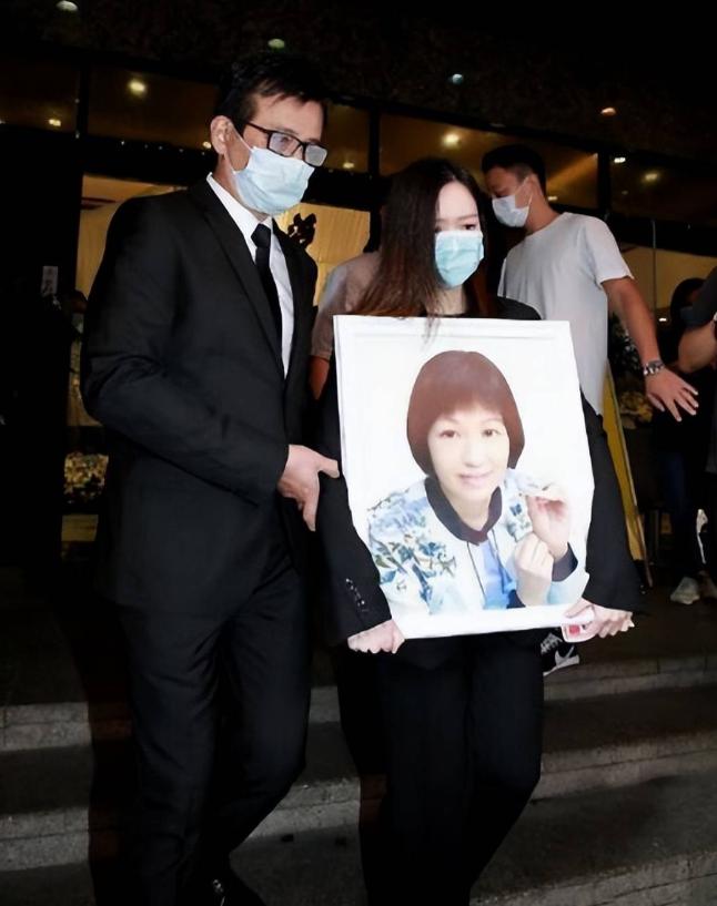 葬礼那天,黄日华穿着黑色西装,身形瘦得脱了相,全程紧紧握着妻子的遗照,泪如雨下,好几次差点哭到晕厥。