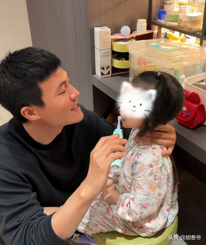 视频里杜淳全程蹲在地上,给女儿刷牙、涂面霜,动作轻柔又专注,小蛋饺乖乖配合,画面特别治愈。