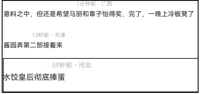 要知道章子怡和马丽不光是全程陪跑,主演电影更是奖项挂零,不管是《酱园弄》还是《水饺皇后》,都没有拿到任何奖项,可以说坐了一整晚冷板凳。