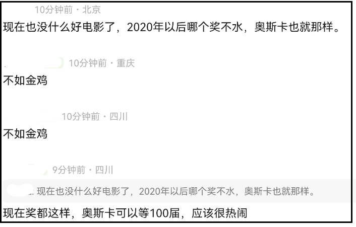 实际上,被吐槽的不仅是金像奖,也不仅是华语电影奖项。