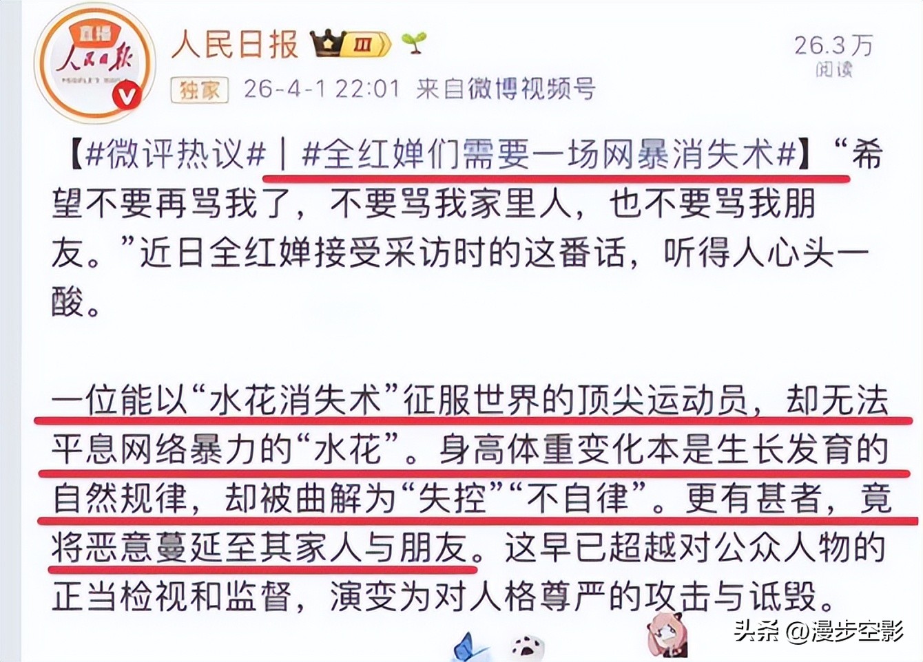 2023年,全红婵进入发育期。身高体重开始变化,比赛成绩也有了起伏。这些再正常不过的生理现象,却被那群人精准捕捉。