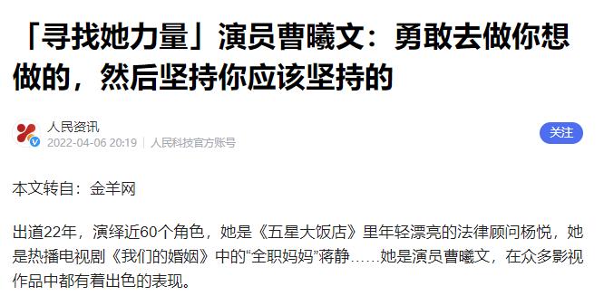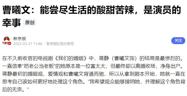 而坐在手机屏幕前的曹曦文,彼时已经39岁——离过婚,当过单亲妈妈,在剧组被人指着鼻子骂过“抢戏”,演了快二十年配角。