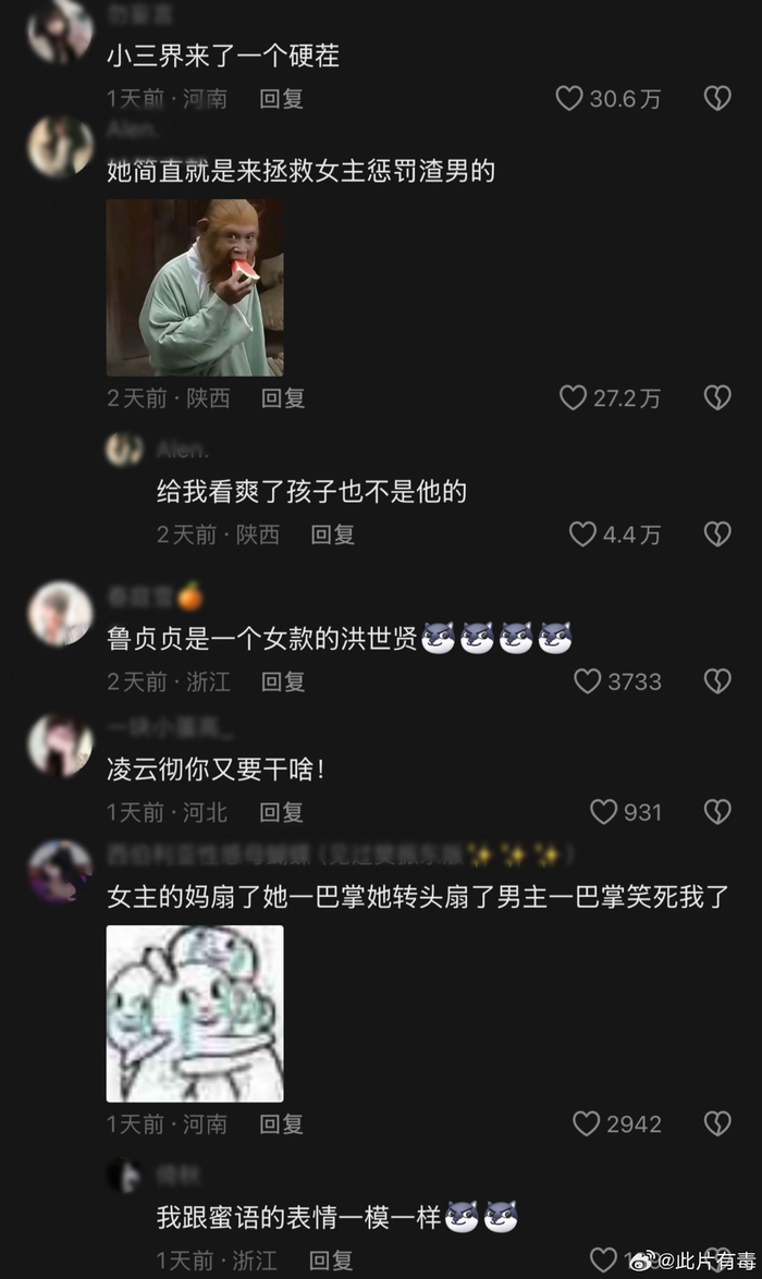 网友:她简直就是来拯救女主惩罚渣男的