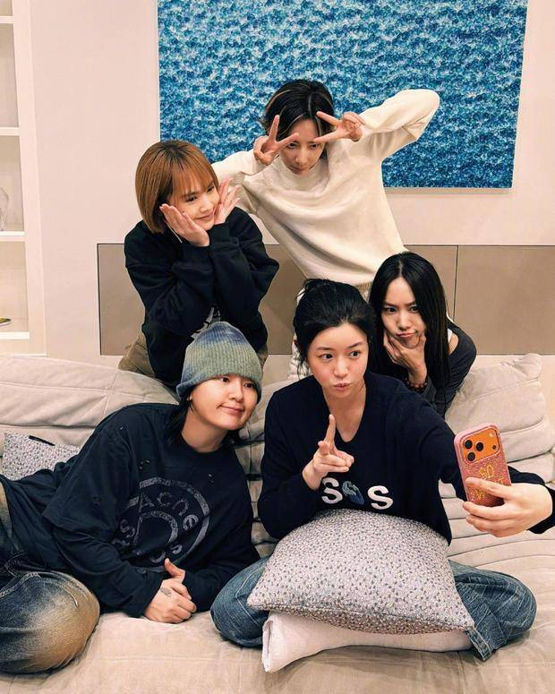 照片中,陈妍希、王霏霏、李斯丹妮笑容灿烂,展现出真挚的喜悦;而周笔畅依然保持着一贯的酷范儿,低调中透露着几分独特的魅力。杨丞琳则是张开嘴巴笑得特别灿烂,拍照时的表情可爱极了,仿佛又回到了那个曾经活力四射的青春时光。
