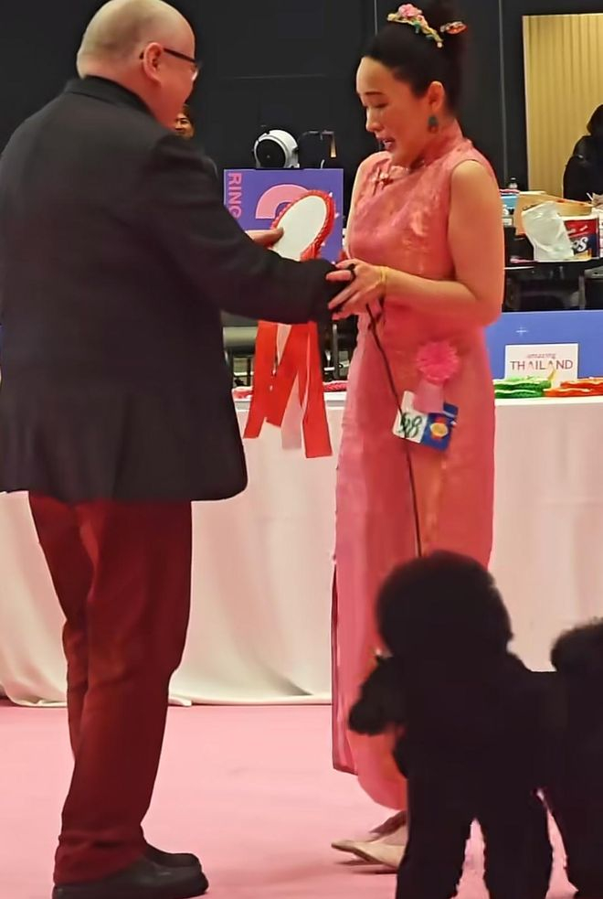 要说内娱活得最通透惬意的女明星,霍思燕绝对能排进前几位。大半时间淡出拍戏,不用抢资源不用凹完美人设,每天带着自家养的狗狗到处飞参加比赛,日子过得比谁都自在。这不,这次在泰国的国际比赛上,她家另一只小狗又拿了奖,现场霍思燕开心到绷不住的样子,直接把网友甜翻了。