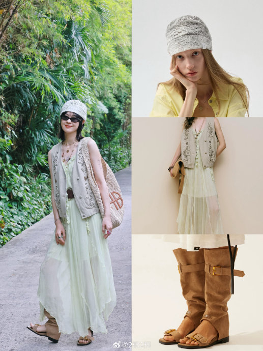 写真捕捉到的不仅是造型变化,更是场域能量对艺术表达的塑造。舞台上,她凭借《时间煮雨》《路过人间》等作品构建情感共振场,用高位置混声穿透万人喧嚣;而面对无观众的海岸线,她的表达转向内敛:一个抱膝独坐的剪影、被风鼓动的裙摆,都在静默中完成与自然的对话。这种从"声浪轰鸣"到"寂然独语"的场景转换,本质是两种艺术表达维度的互补——当镁光灯熄灭,她在潮汐声中找到了更原生的创作灵感,印证了粉丝所言"她的歌声本就属于山海旷野"。