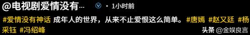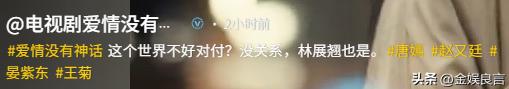 《爱情没有神话》这部剧本身不算差,要是女主演技在线,未必不能成为爆款,可偏偏因为唐嫣的拉胯,让这部剧开播就口碑翻车,实在可惜。