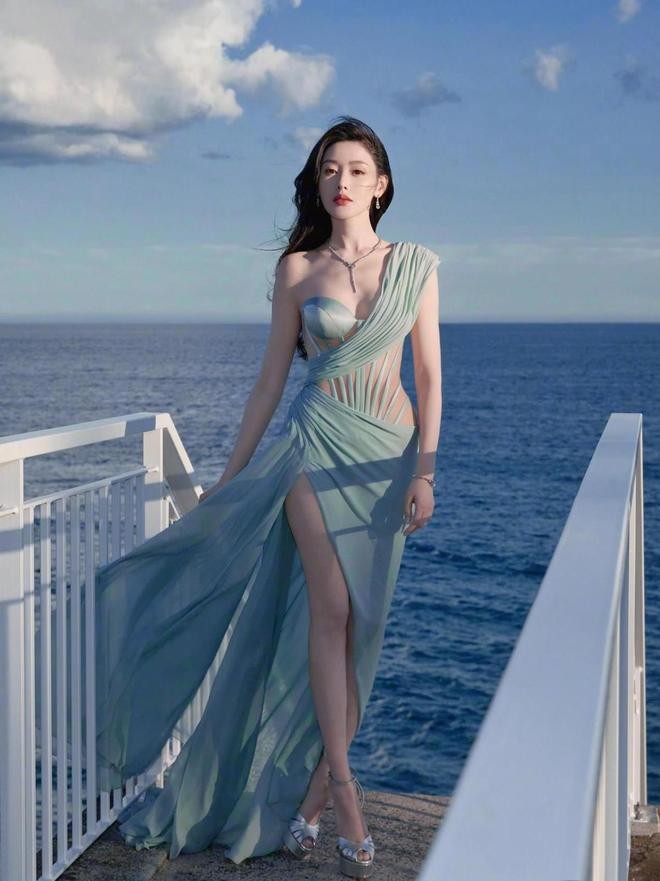 还有下面这一身性感的透视连衣裙,一般人真的驾驭不了,低饱和的薄荷绿清透大方,自带清凉的夏日氛围感,衬得她皮肤冷白透亮,又和海边的光影完美融合,完全不会显得突兀,反而像从海浪里走出来的人鱼公主。