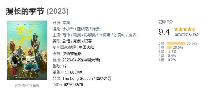 从豆瓣评分来看没有《漫长的季节》高,那么这部剧为何能排在第一?