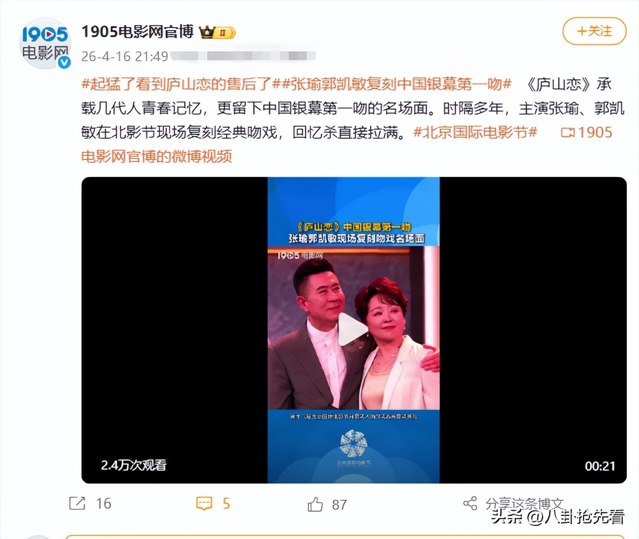 作为影坛知名老前辈,她的出场着实令人吃惊,就连官媒都转发了她露面的视频,声称《庐山恋》迎来了顶级“售后”。
