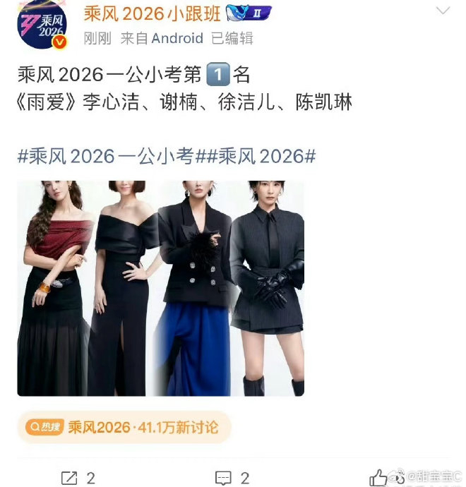 在《乘风2026》首次公演小考的舞台上,李心洁、谢楠、徐洁儿、陈凯琳以全开麦零垫音的硬核实力演绎《雨爱》,用纯粹人声与极致默契打造出"录音棚级现场",不仅斩获声乐组第一名,更掀起关于音乐本质的讨论热潮。