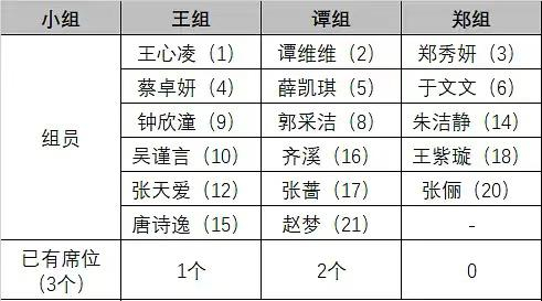 谭维维队3个、王心凌队4个、郑秀妍队2个:谭维维、薛凯琪、郭采洁、王心凌、钟欣潼、蔡卓妍、吴谨言、郑秀妍、于文文。