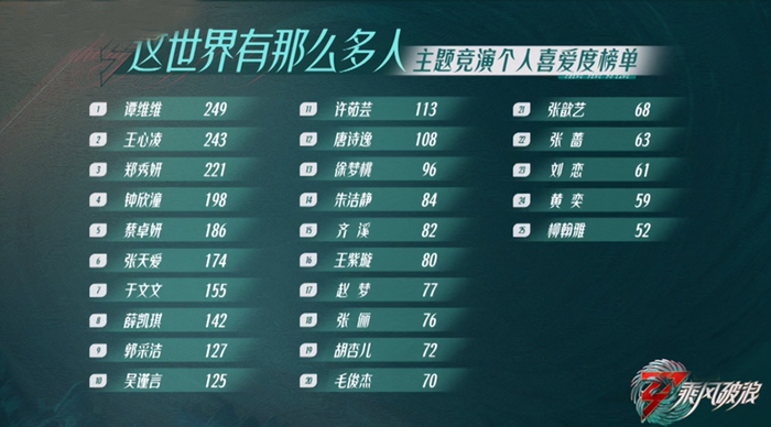 由于《浪姐3》不能够进行网络投票,所以大家也很关注最后的成团名额如何产生,从曝光的赛制和成团规则来看,姐姐们通过3团大战来争夺成团名额,然后再根据个人喜爱度来分配具体的名额,所以姐姐们过往舞台的喜爱度排名也影响着成团名额。