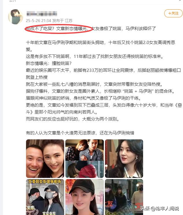 前两年,文章被曝新恋情,由于女友被指酷似姚笛,还惹来了很多网友的负评,不过两人的感情并没有受到影响,之后再次被遇到约会,仍然是同一个人。