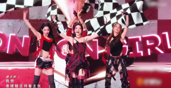4月24日晚,由淡淡、唐艺昕、陈凯琳、何宣林组成的“淡淡团”带来了《BonBon Girls》的唱跳舞台。